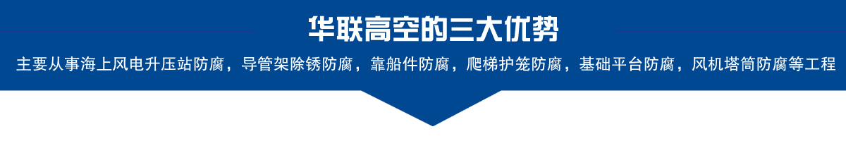 歡迎訪問鹽城市華聯高空維修防腐有限公司官方網站!公司主營:海上風電升壓站防腐,風機導管架除銹防腐,靠船件防腐,塔筒防腐,鋼管樁套籠防腐,基礎平臺防腐,編號標識噴涂等工程 返回首頁 | 加入收藏 | 聯系我們